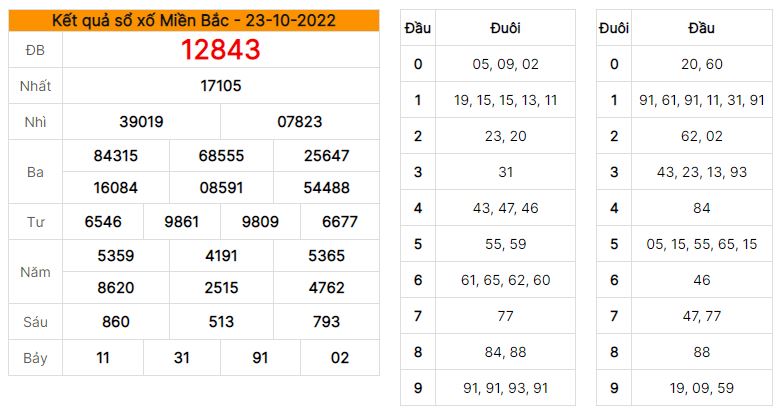 Dựa trên bảng kết quả xổ số miền Bắc ngày 23/10/2022, chúng ta có các thông số như sau: